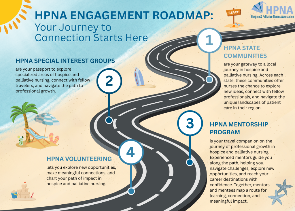 is your travel companion on the journey of professional growth in hospice and palliative nursing. Experienced mentors guide you along the path, helping you navigate challenges, explore new opportunities, and reach your career destinations with confidence. Together, mentors and mentees map a route for learning, connection, and meaningful impact.